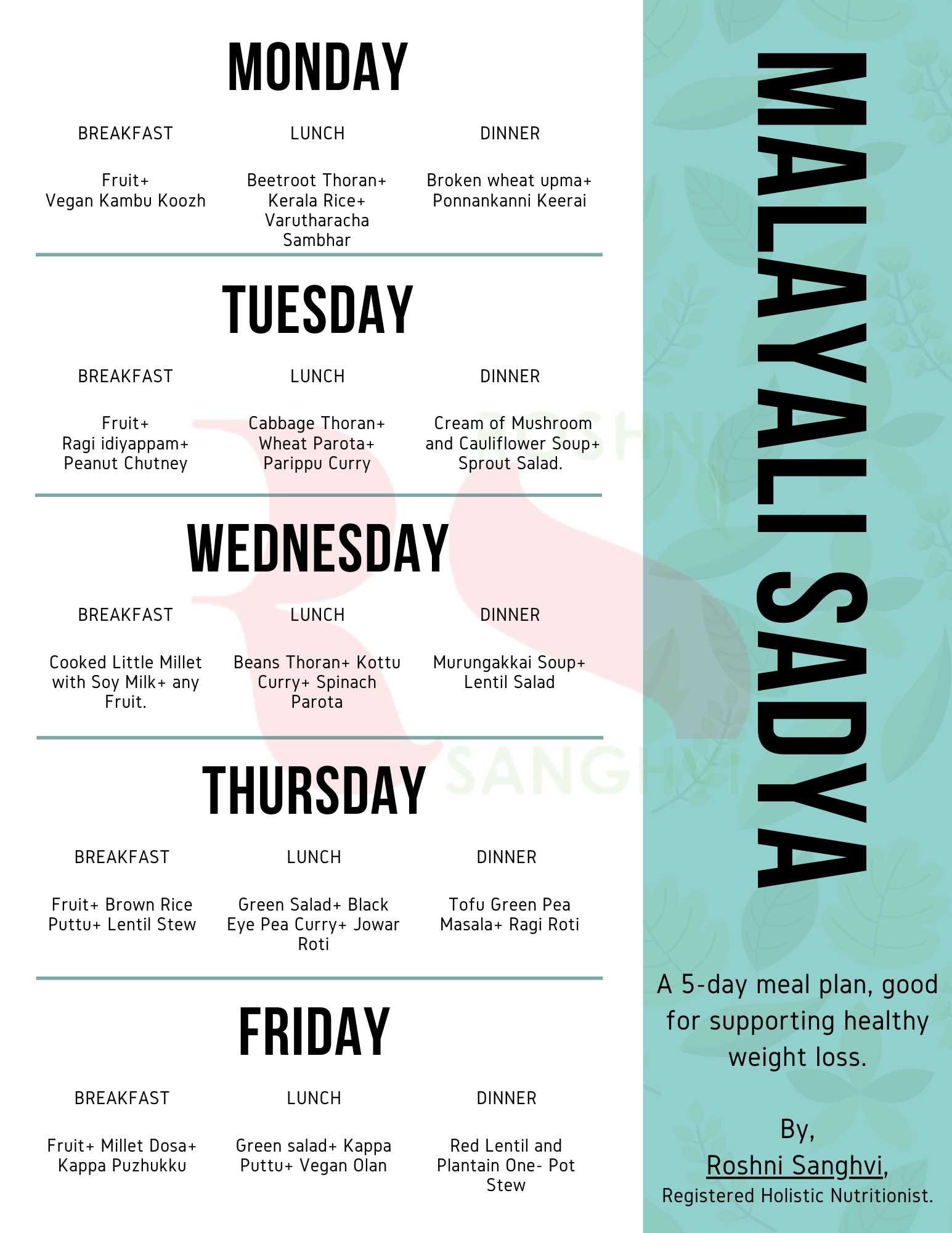 Planning your meals weekly helps avoid unhealthy choices. Include a variety of local Malayalam foods to keep meals interesting and nutritious.
