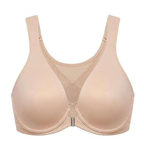 1. DELIMIRA Women’s Front Closure Bras Posture Full Coverage Beige Bra
