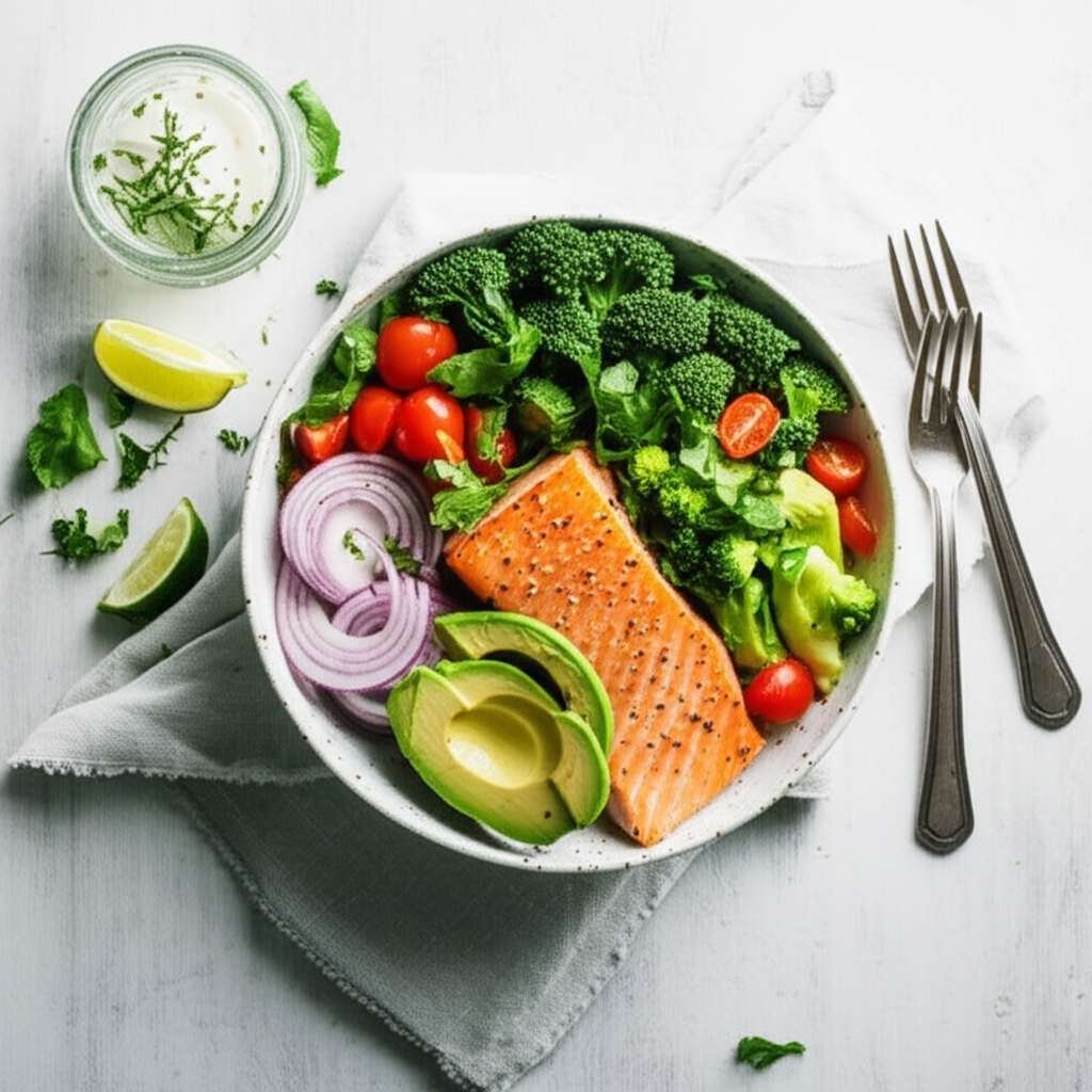 | Healthy Fats | 15-20g | Primarily omega-3s from salmon and monounsaturated fats from olive oil, crucial for hormone function and satiety. |