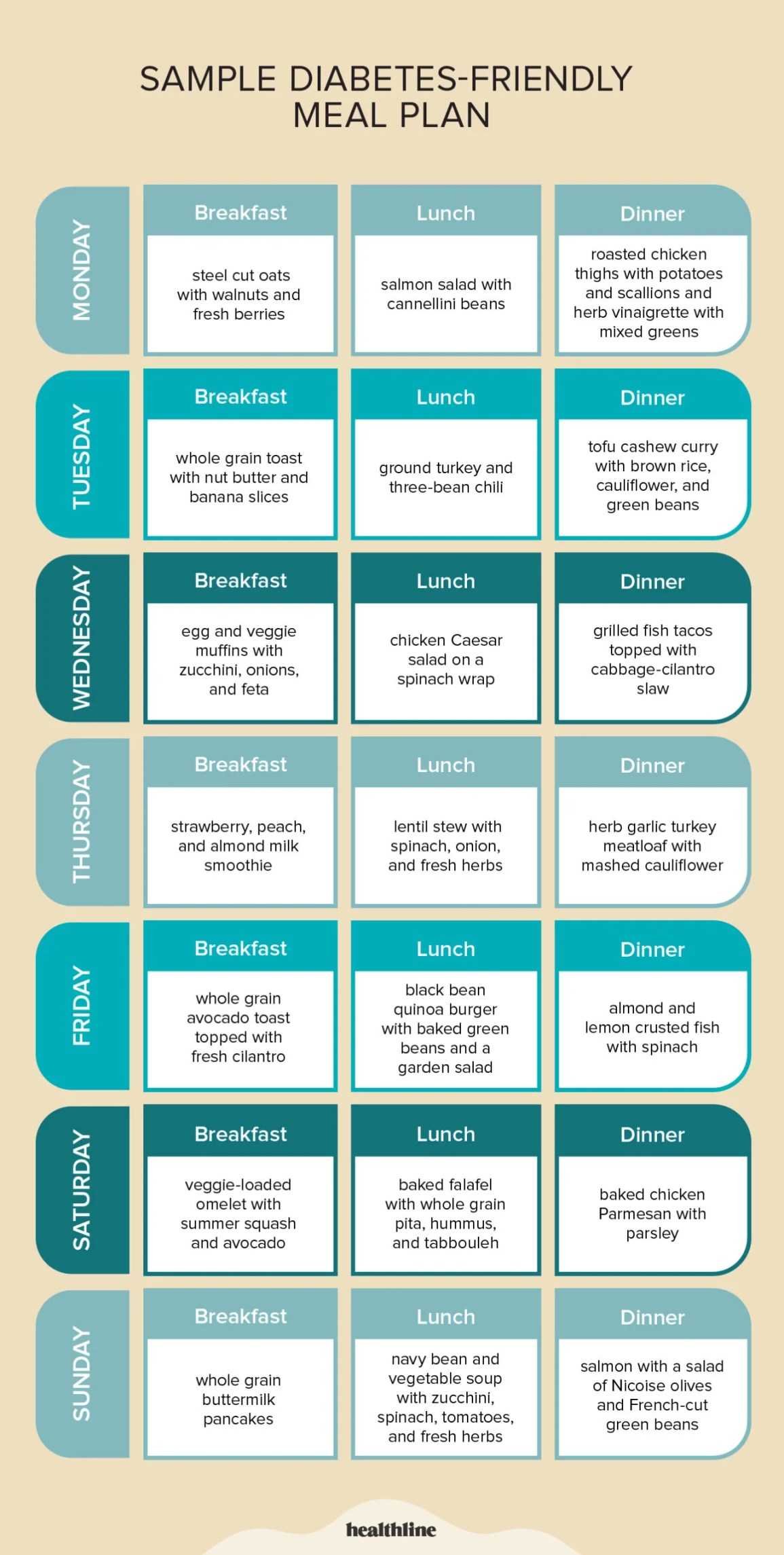 Breakfast Oatmeal with berries and a tablespoon of flaxseed Rich in fiber, helps control blood sugars